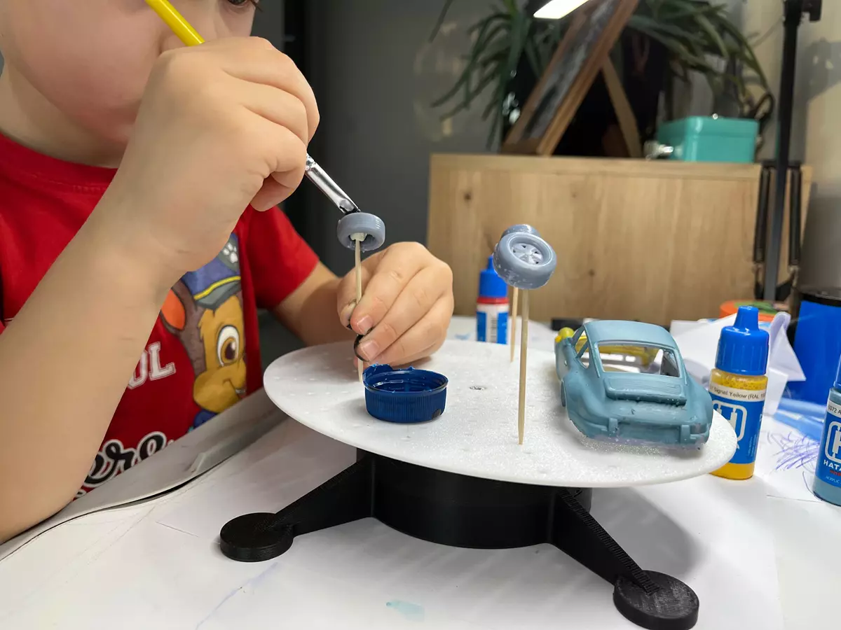 Stół obrotowy to jedno z podstawowych narzędzi, które znacząco ułatwia pracę przy malowaniu modeli. Dzięki niemu możesz obracać model w trakcie pracy, co pozwala na równomierne nakładanie farby, lepszy dostęp do trudno dostępnych miejsc i uniknięcie smug lub zacieków.